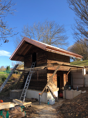 Après avoir démonté le mazot au Petit-Bornand (74) en numérotant soigneusement les éléments, nous avons remonté ce magnifique Mazot dans le jardin des clients. Les pièces trop abîmées ont été remplacées en prenant soin de conserver le cachet de l'ancien. La toiture et la couverture ont été complètement reprises et isolées. les huisseries, escaliers et ornements ont également fait l'objet d'un travail soigneux pour redonner au Mazot son éclat d'autrefois.